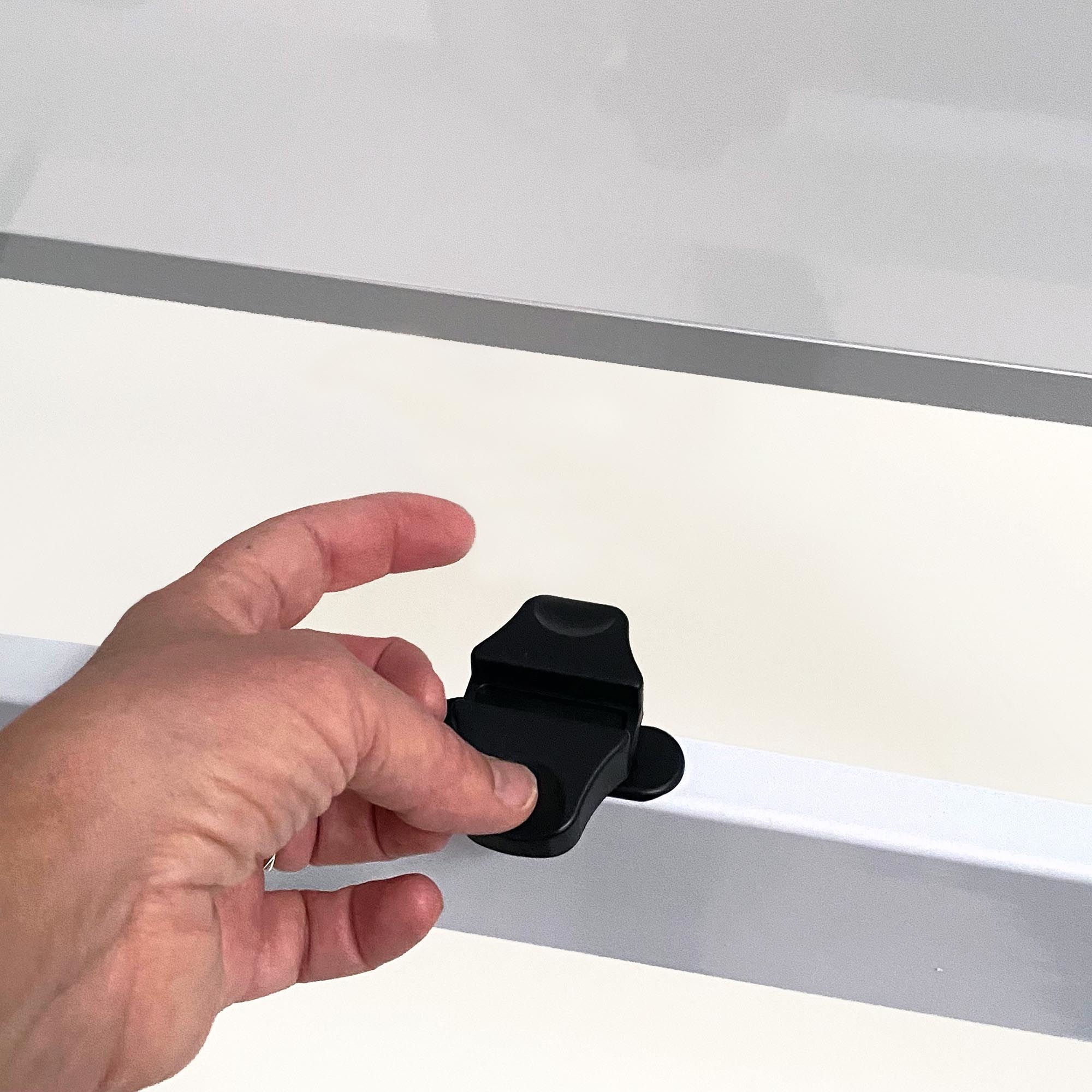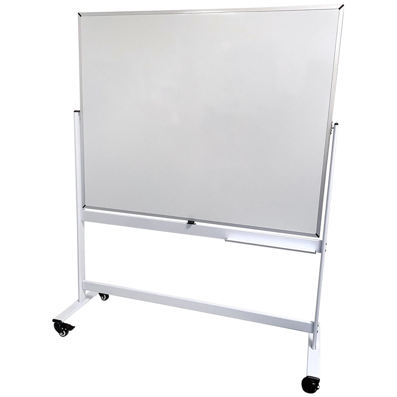 Double-sided whiteboard with a high-quality white enamel, magnetic surface. Mounted on a white powder-coated frame with lockable wheels. The board can be easily flipped with a single click. Includes a pen shelf. Easy to assemble – includes tools. Use whiteboard markers for writing - easily cleaned with a dry cloth - it is recommended to use a cleaner spray regularly to remove any marker residue. The board is magnetic, allowing you to hang items on it with magnets and use it as a bulletin board.