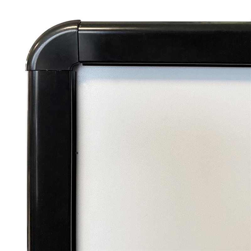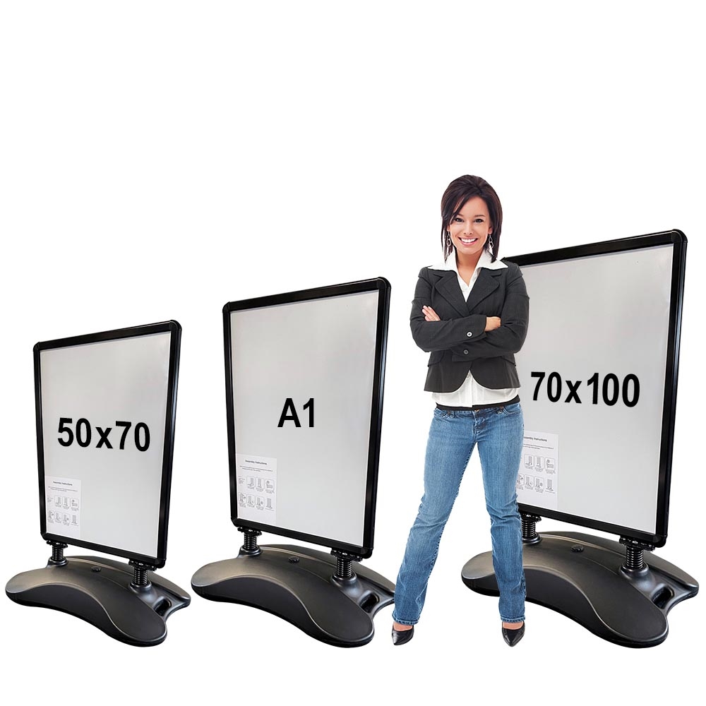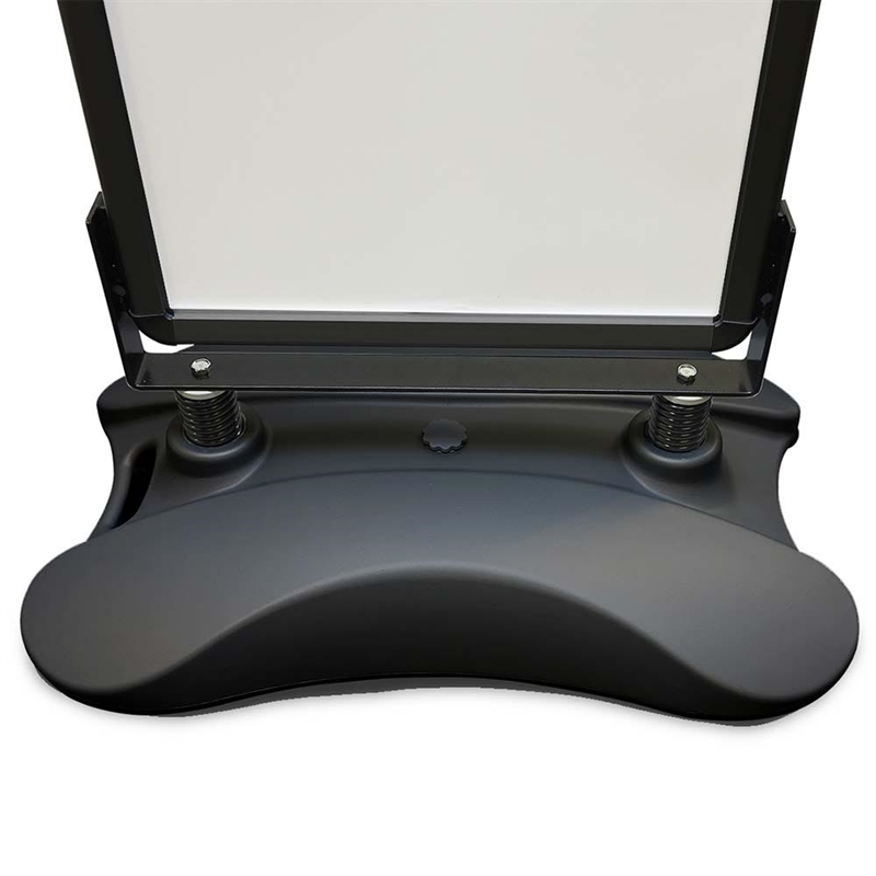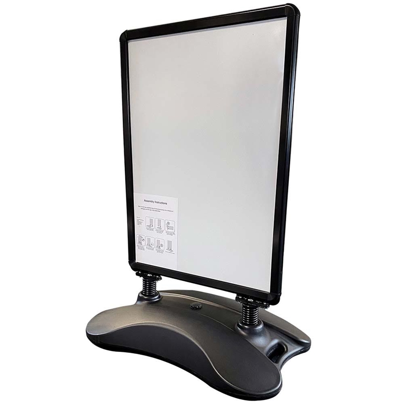 Gör kunderna på gatan medvetna om din butik med det väderbeständiga Wind-Sign Waterbase Basic. Den svarta Trottoarprataren har en 32 mm aluminiumskjutram med snyggt avrundade hörn. Frontpanelerna är tillverkade av antireflex APET.