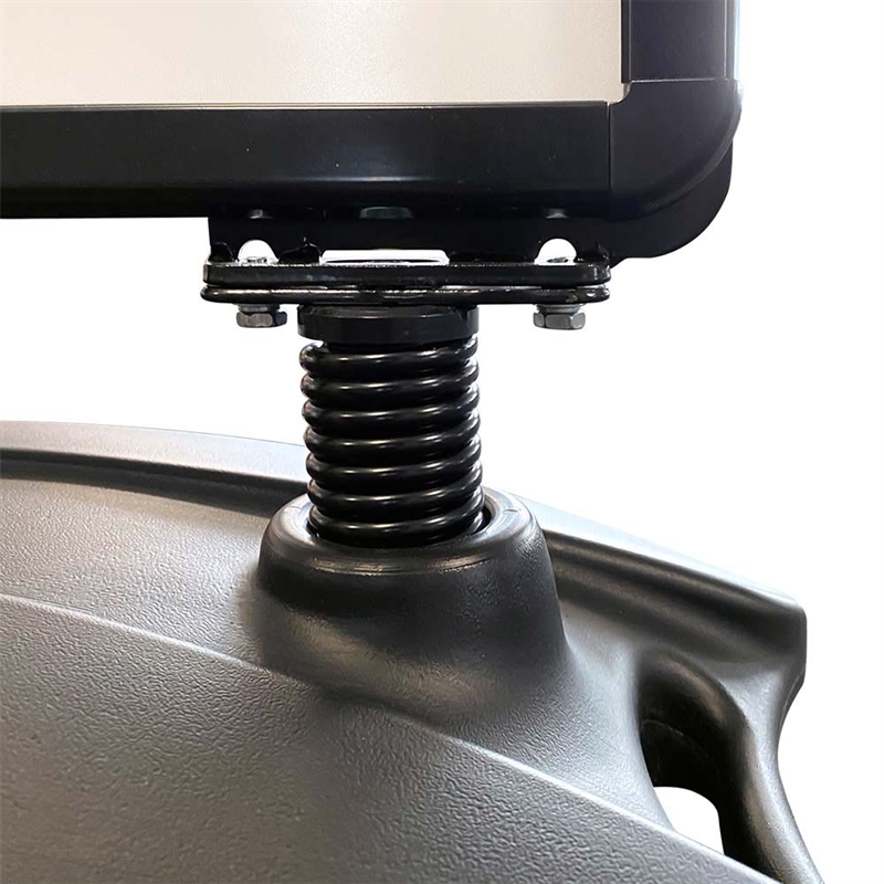 • Skylten har två fjädrar som är behandlade mot rost. De hjälper till att ge skylten flexibilitet så att den inte blåser bort eller går sönder i utmanande väderförhållanden.