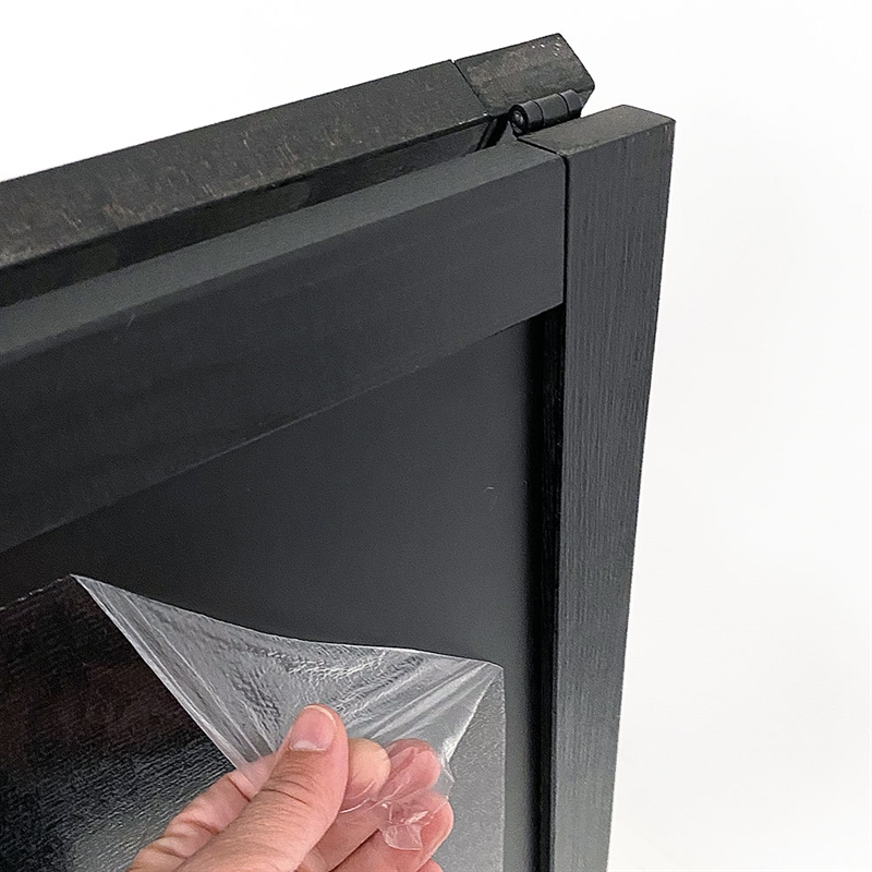 I svartbetsat trä med ståltavlor strålar ett stilrent design som passar vackert in i varje rum, oavsett om det är inomhus eller utomhus. Denna välgjorda gadeskylt är designad och skapad med karaktär, då själva skylten är tillverkad av robust svartbetsat bokträ. I träramen på gadeskylten är det monterade svarta ståltavlor, vilka mycket praktiskt fungerar som både skrivtavla och magnettavla.